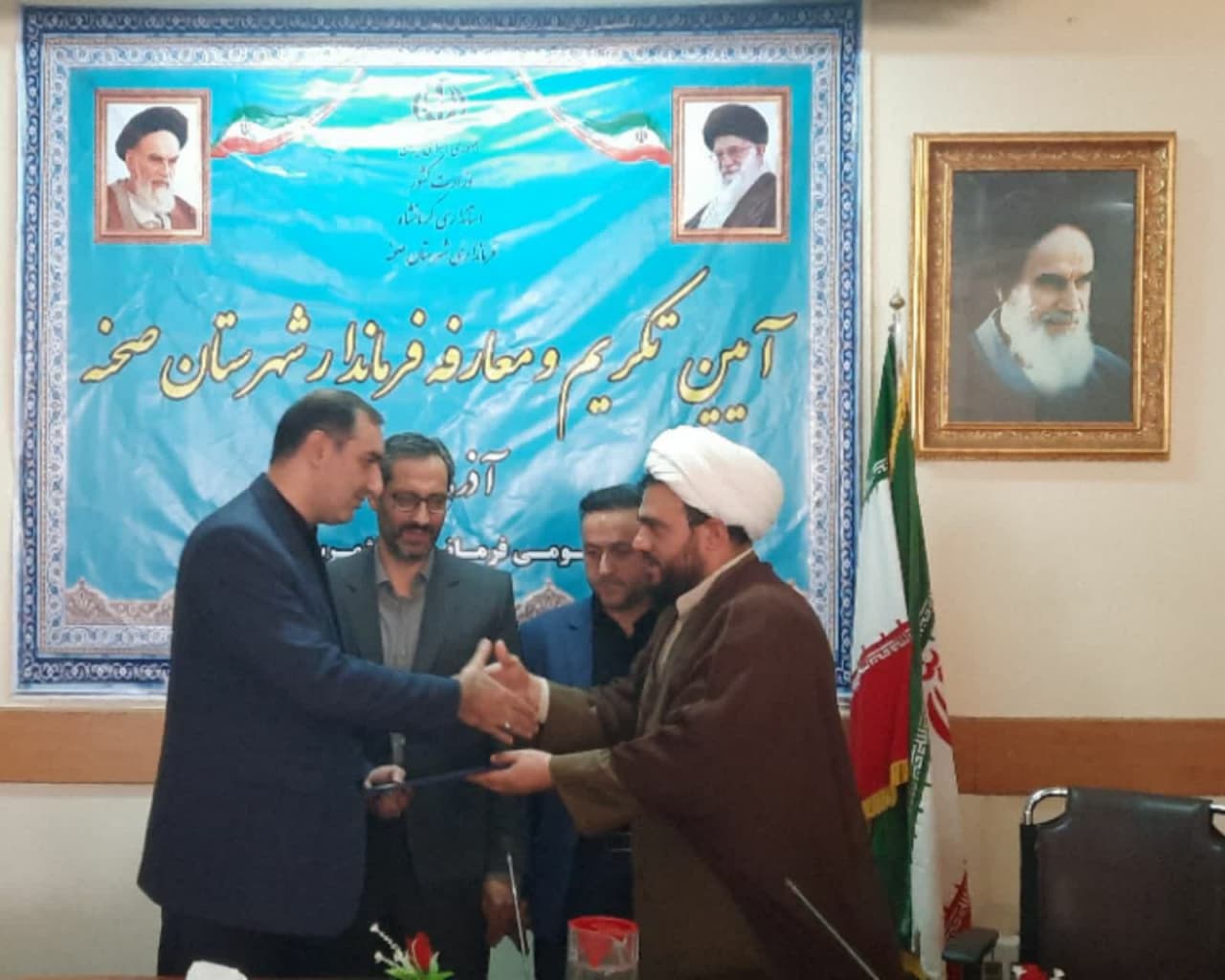 در این مراسم از زحمات آقای دكتر جهانبخش زنگنه تبار بعنوان سرپرست فرمانداری تقدیر و آقای دكتر غلامرضا شهبازی بعنوان سرپرست جدید فرمانداری شهرستان صحنه معارفه شدند.