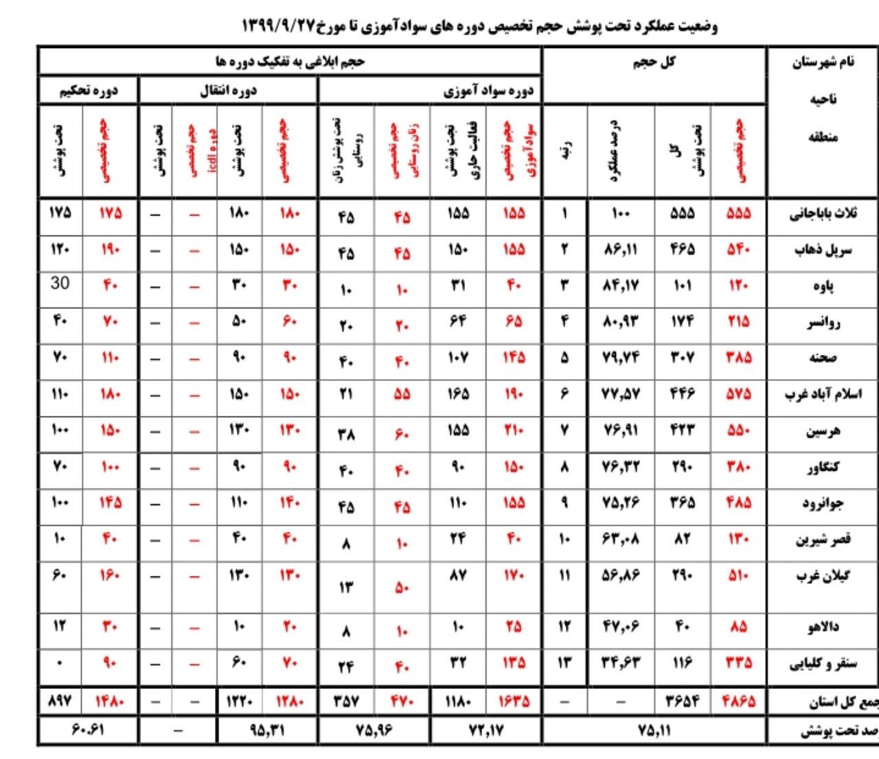 شهرستان ثلاث باباجانی در حوزه سوادآموزی درپوشش حجم کامل ابلاغی و جذب ونگهداشت...